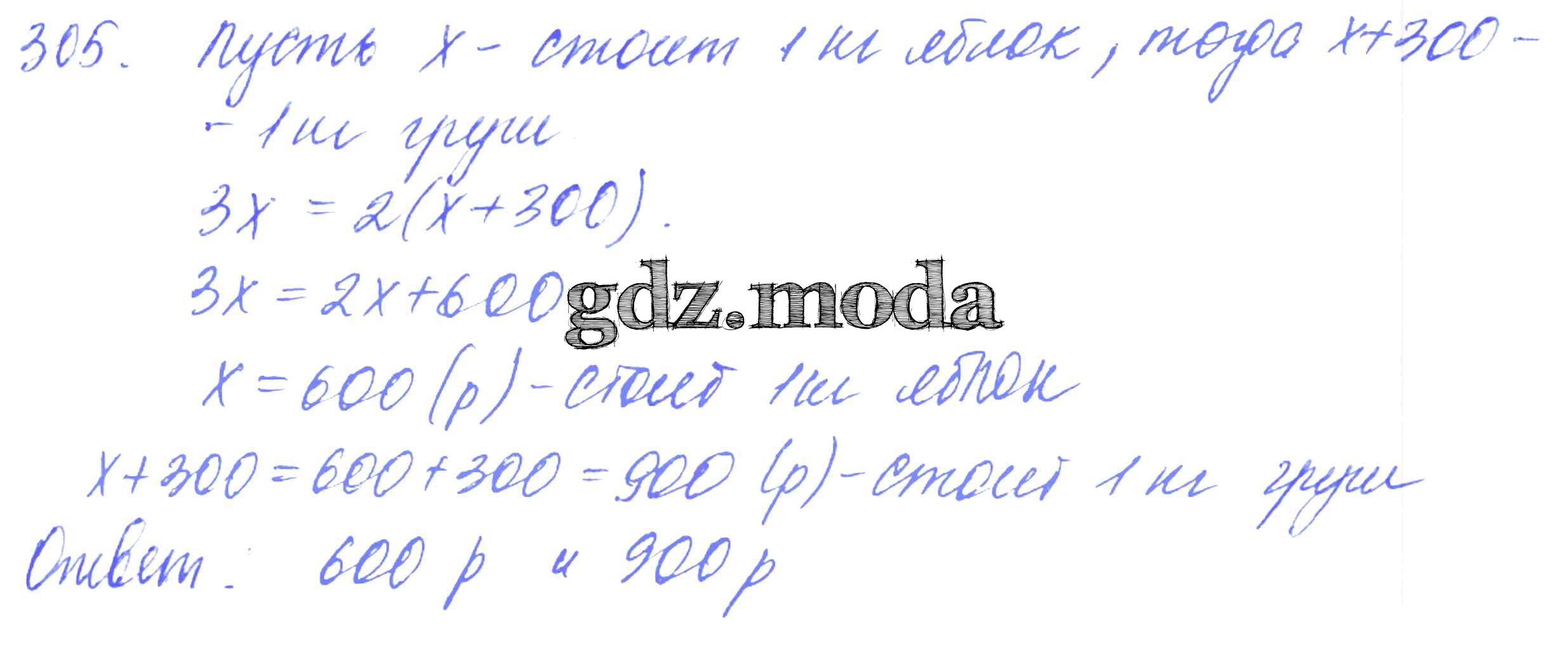 ГДЗ решение к заданию № 305 Математика 6 класс дидактические материалы Чесноков А.С. Академкнига 2014 ФГОС бесплатно на гдз.мода!