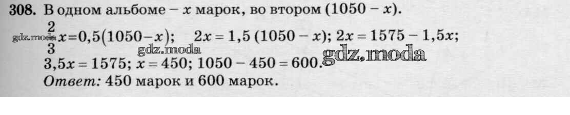 ГДЗ решение к заданию № 308 Математика 6 класс дидактические материалы Чесноков А.С. Академкнига 2014 ФГОС бесплатно на гдз.мода!