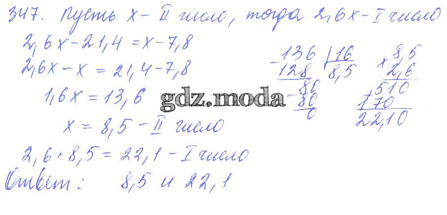 ОТВЕТ на задание № 347 Дидактические материалы по Математике 6 класс Чесноков