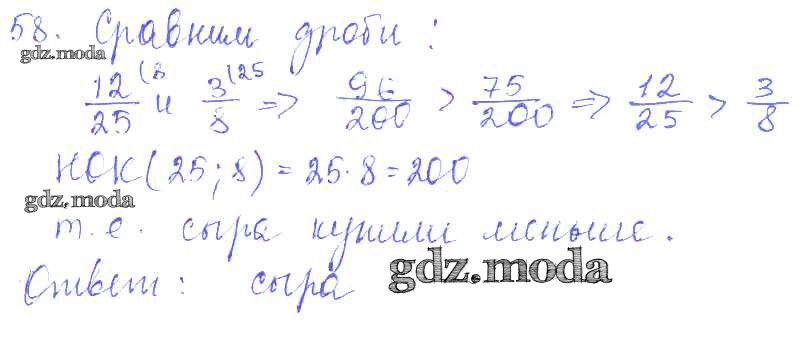 ГДЗ решение к заданию № 58 Математика 6 класс дидактические материалы Чесноков А.С. Академкнига 2014 ФГОС бесплатно на гдз.мода!