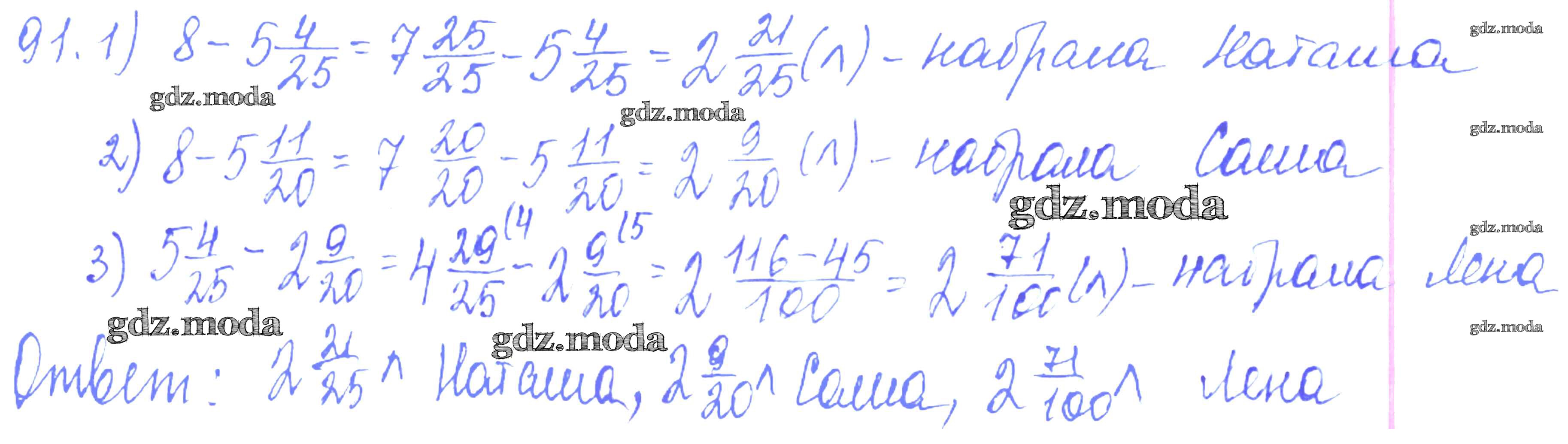 ГДЗ решение к заданию № 91 Математика 6 класс дидактические материалы Чесноков А.С. Академкнига 2014 ФГОС бесплатно на гдз.мода!
