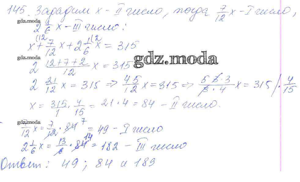 ГДЗ решение к заданию № 145 Математика 6 класс дидактические материалы Чесноков А.С. Академкнига 2014 ФГОС бесплатно на гдз.мода!