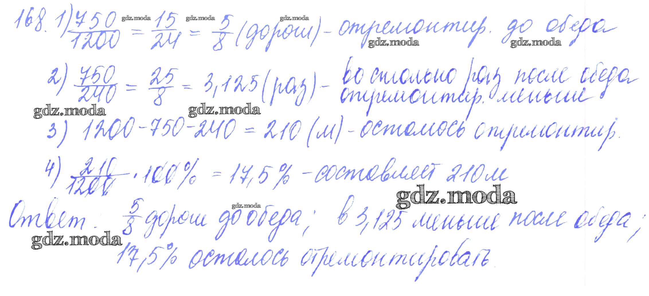 ГДЗ решение к заданию № 168 Математика 6 класс дидактические материалы Чесноков А.С. Академкнига 2014 ФГОС бесплатно на гдз.мода!