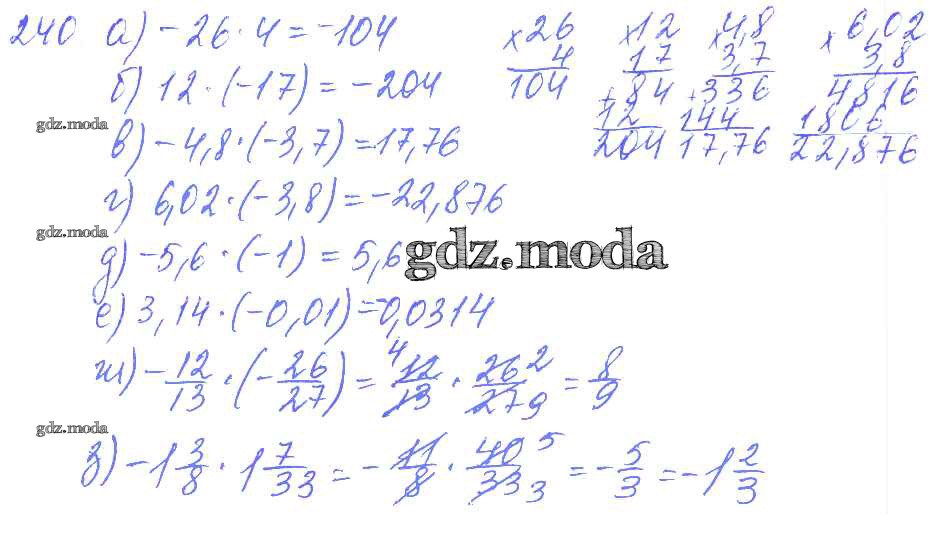 ОТВЕТ на задание № 240 Дидактические материалы по Математике 6 класс Чесноков