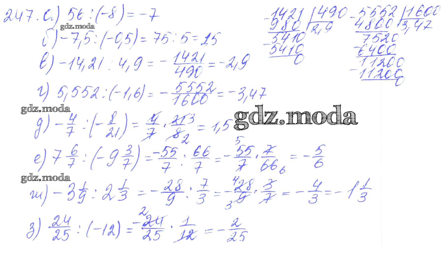 ОТВЕТ на задание № 247 Дидактические материалы по Математике 6 класс Чесноков