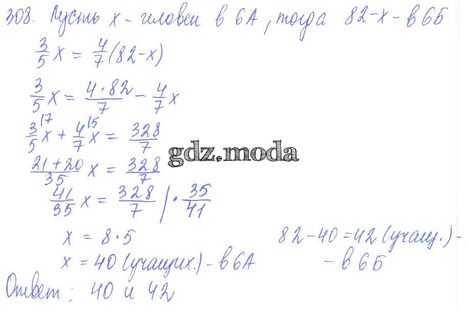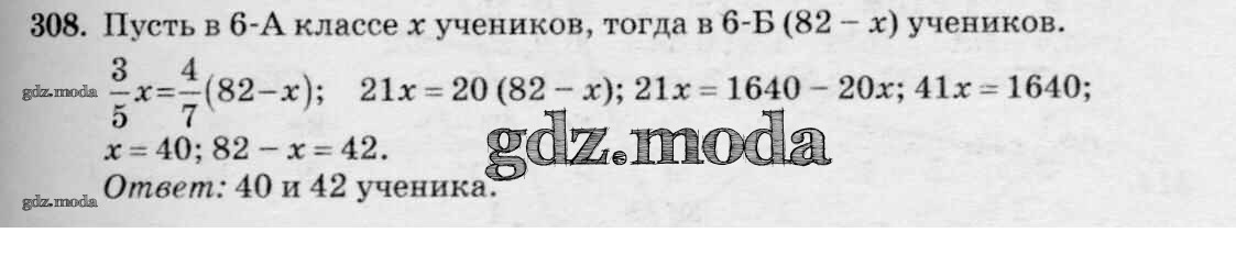 ГДЗ решение к заданию № 308 Математика 6 класс дидактические материалы Чесноков А.С. Академкнига 2014 ФГОС бесплатно на гдз.мода!
