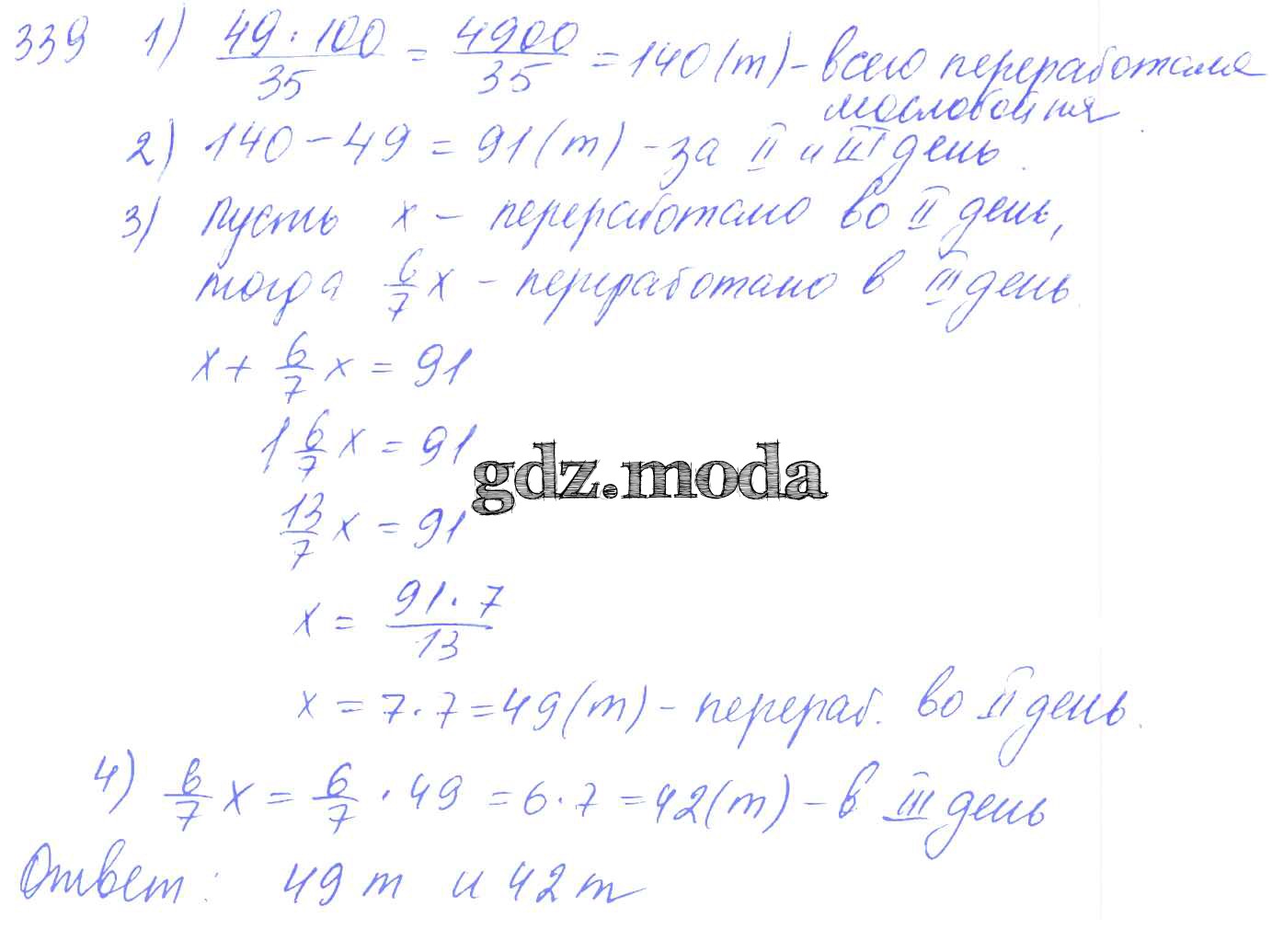 ОТВЕТ на задание № 339 Дидактические материалы по Математике 6 класс Чесноков