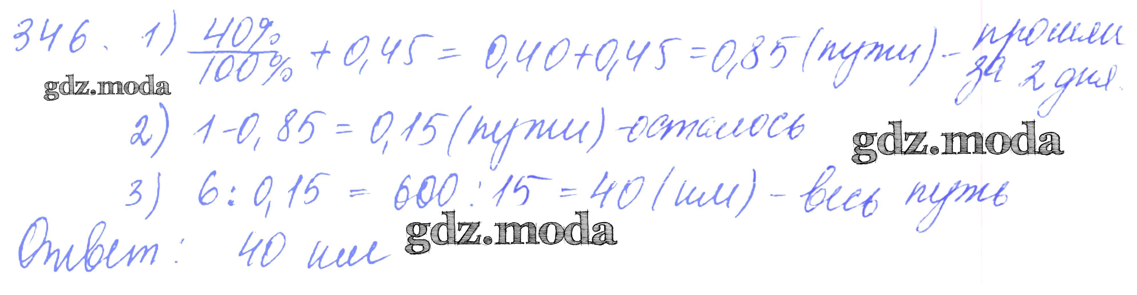 ГДЗ решение к заданию № 346 Математика 6 класс дидактические материалы Чесноков А.С. Академкнига 2014 ФГОС бесплатно на гдз.мода!