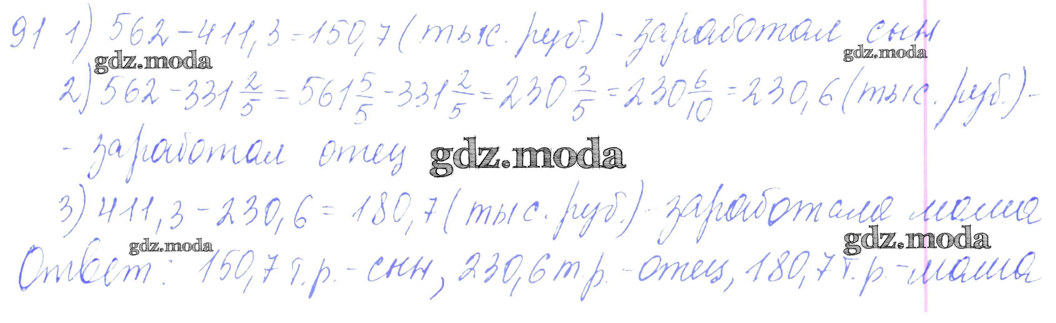 ГДЗ решение к заданию № 91 Математика 6 класс дидактические материалы Чесноков А.С. Академкнига 2014 ФГОС бесплатно на гдз.мода!