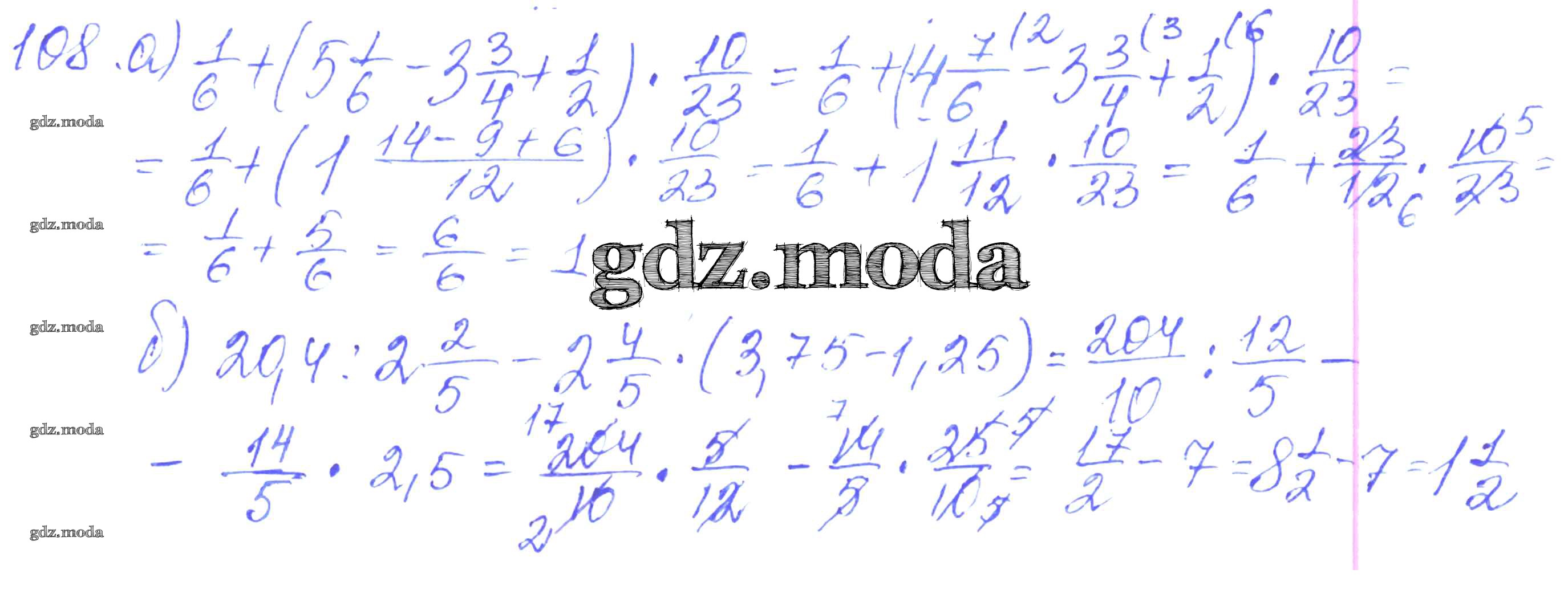 ГДЗ решение к заданию № 108 Математика 6 класс дидактические материалы Чесноков А.С. Академкнига 2014 ФГОС бесплатно на гдз.мода!