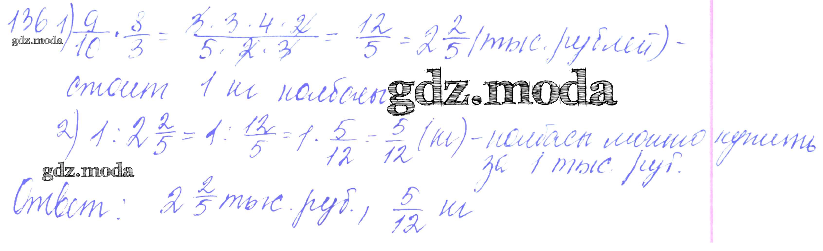 ГДЗ решение к заданию № 136 Математика 6 класс дидактические материалы Чесноков А.С. Академкнига 2014 ФГОС бесплатно на гдз.мода!