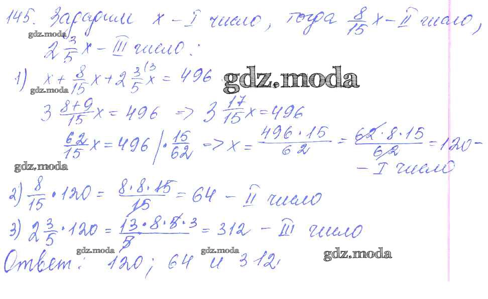 ОТВЕТ на задание № 145 Дидактические материалы по Математике 6 класс Чесноков