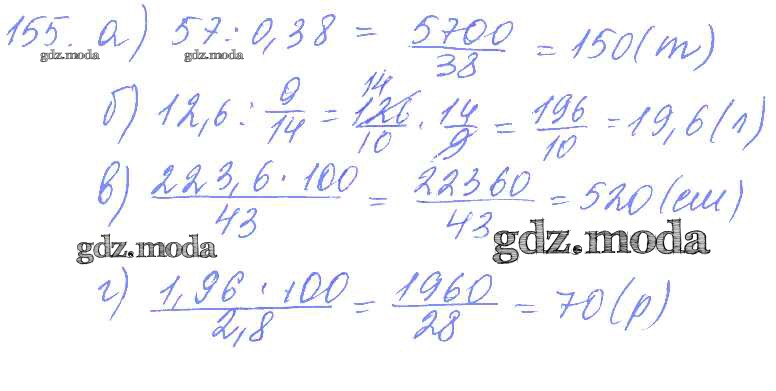 ГДЗ решение к заданию № 155 Математика 6 класс дидактические материалы Чесноков А.С. Академкнига 2014 ФГОС бесплатно на гдз.мода!