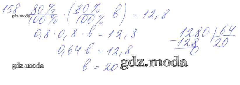 ГДЗ решение к заданию № 158 Математика 6 класс дидактические материалы Чесноков А.С. Академкнига 2014 ФГОС бесплатно на гдз.мода!