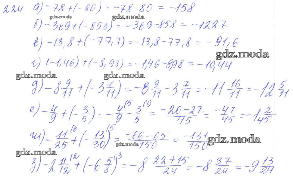 ОТВЕТ на задание № 224 Дидактические материалы по Математике 6 класс Чесноков