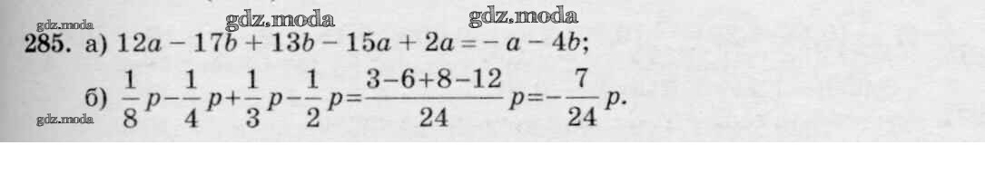 ОТВЕТ на задание № 285 Дидактические материалы по Математике 6 класс Чесноков