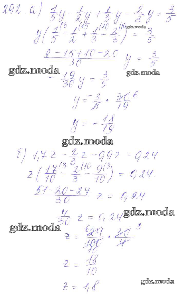 ГДЗ решение к заданию № 292 Математика 6 класс дидактические материалы Чесноков А.С. Академкнига 2014 ФГОС бесплатно на гдз.мода!