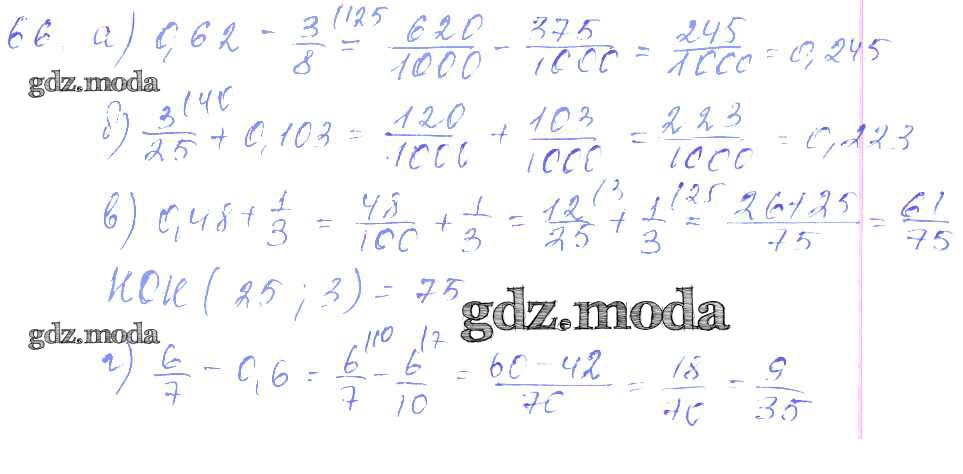 ГДЗ решение к заданию № 66 Математика 6 класс дидактические материалы Чесноков А.С. Академкнига 2014 ФГОС бесплатно на гдз.мода!