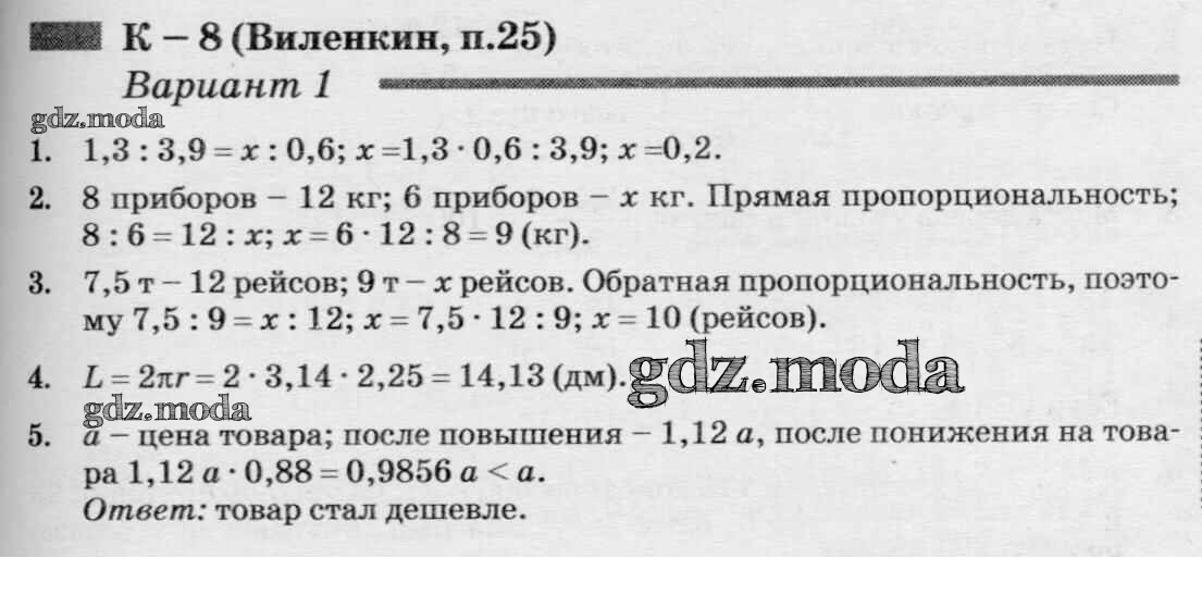 контрольная работа / к учебнику Виленкина / кр-8 / 1