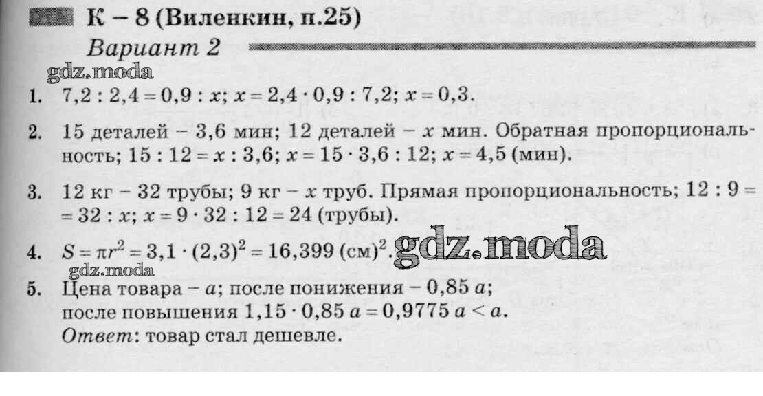 контрольная работа / к учебнику Виленкина / кр-8 / 2