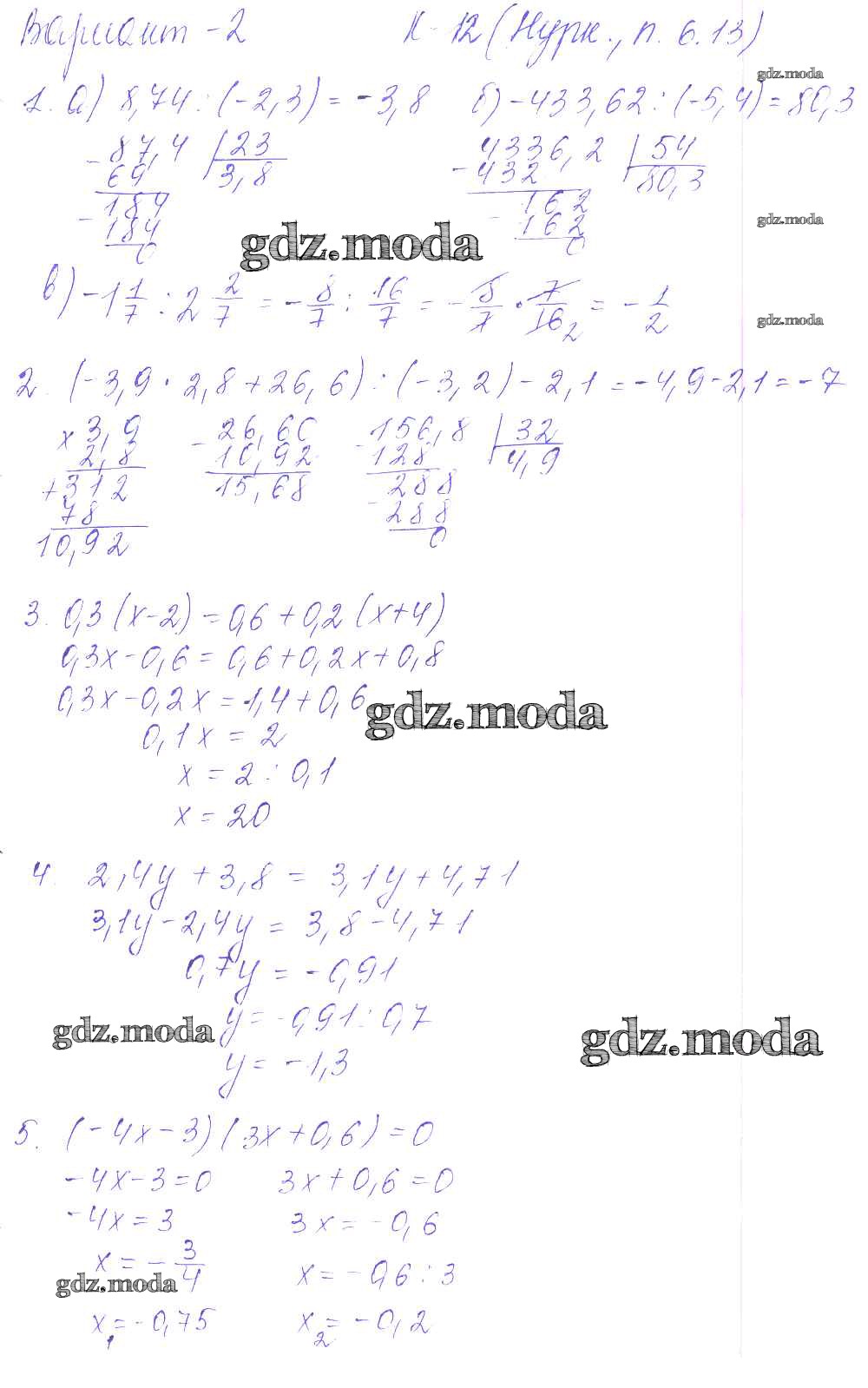 ОТВЕТ на задание № 2 Дидактические материалы по Математике 6 класс Чесноков