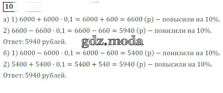 ГДЗ решение к заданию № 10 Математика 6 класс дидактические материалы Кузнецова Л.В. Просвещение 2017 ФГОС бесплатно на гдз.мода!