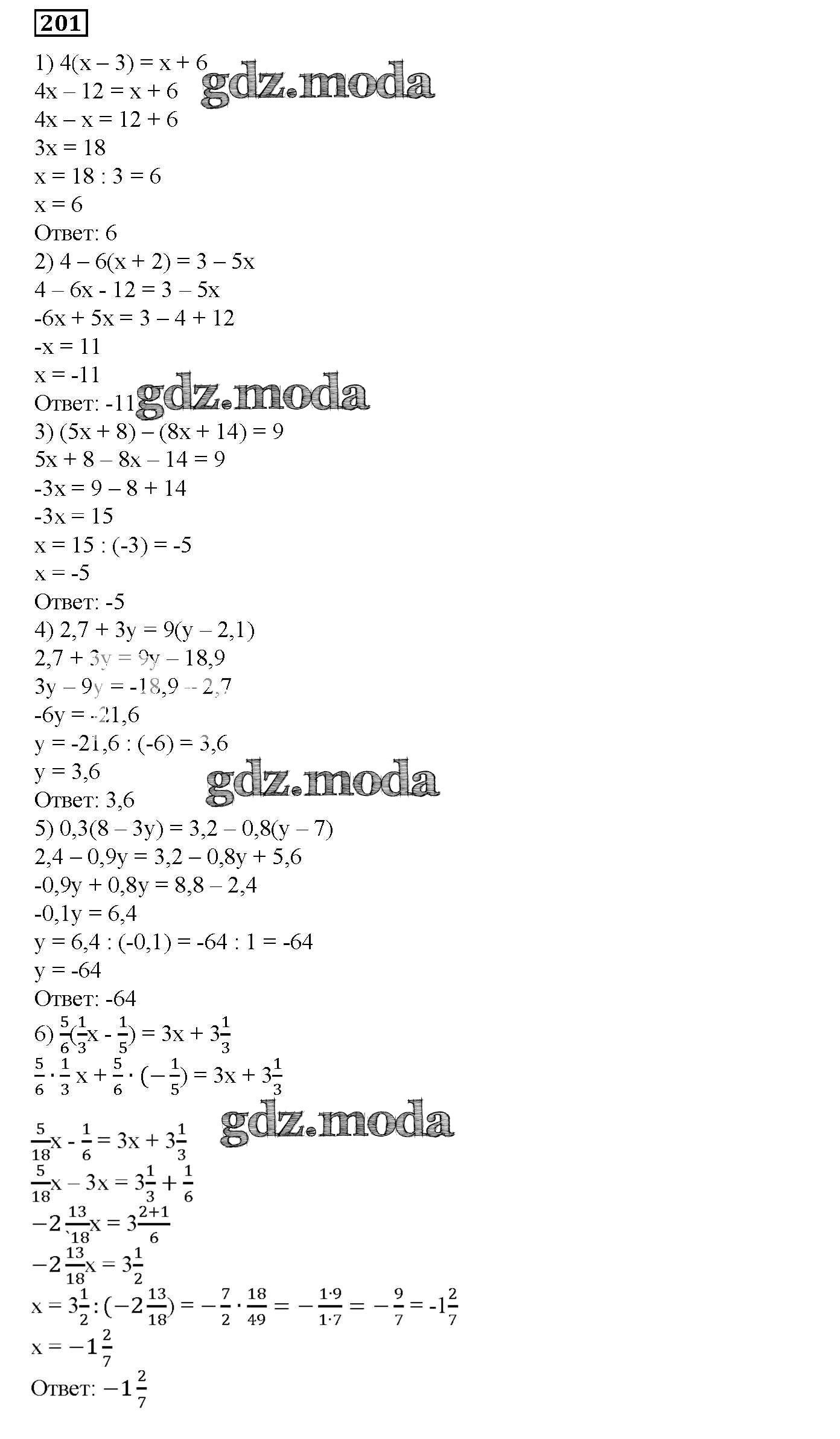ОТВЕТ на задание № 201 Дидактические материалы по Математике 6 класс Мерзляк Алгоритм успеха