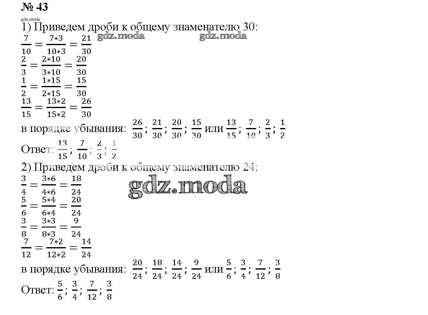 ОТВЕТ на задание № 43 Дидактические материалы по Математике 6 класс Мерзляк Алгоритм успеха
