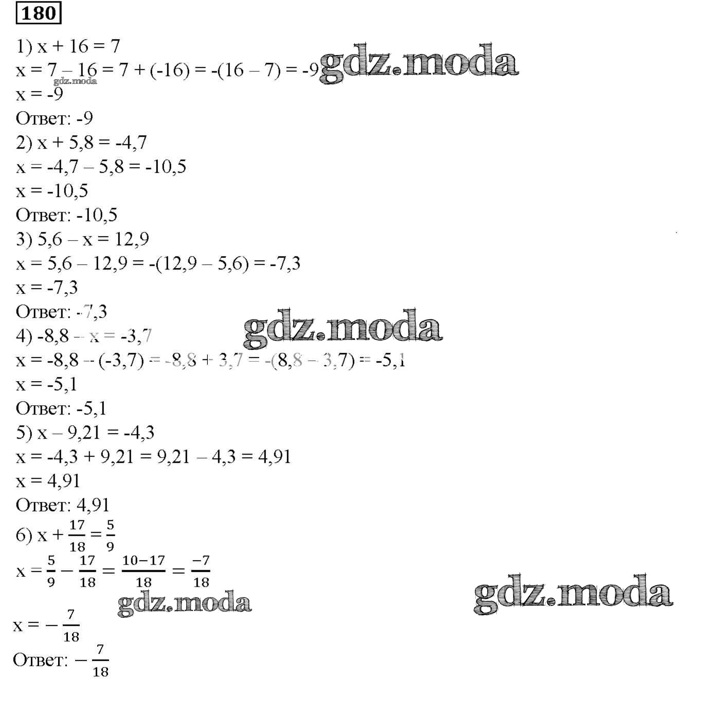 ОТВЕТ на задание № 180 Дидактические материалы по Математике 6 класс Мерзляк Алгоритм успеха