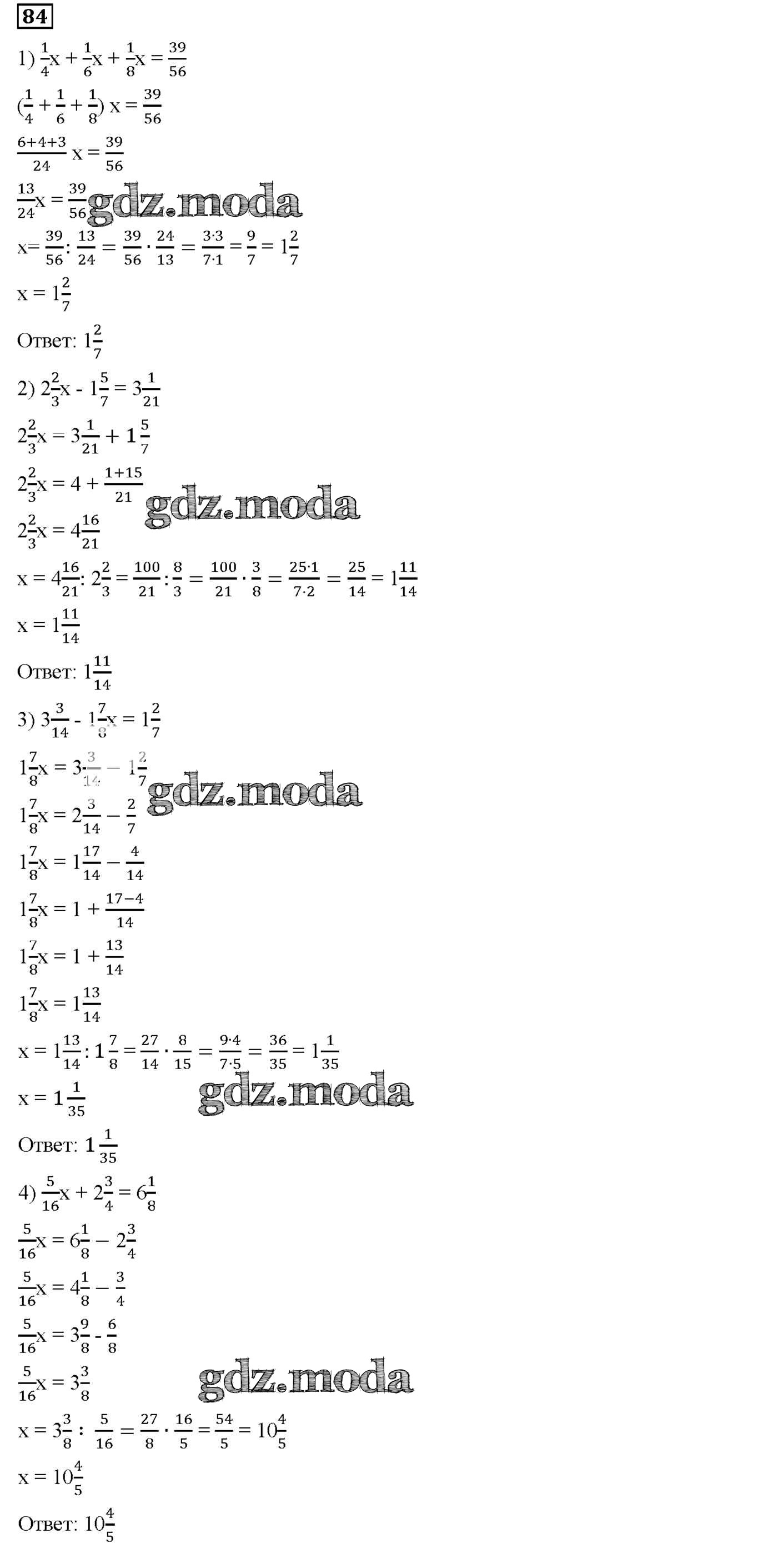 ОТВЕТ на задание № 84 Дидактические материалы по Математике 6 класс Мерзляк Алгоритм успеха