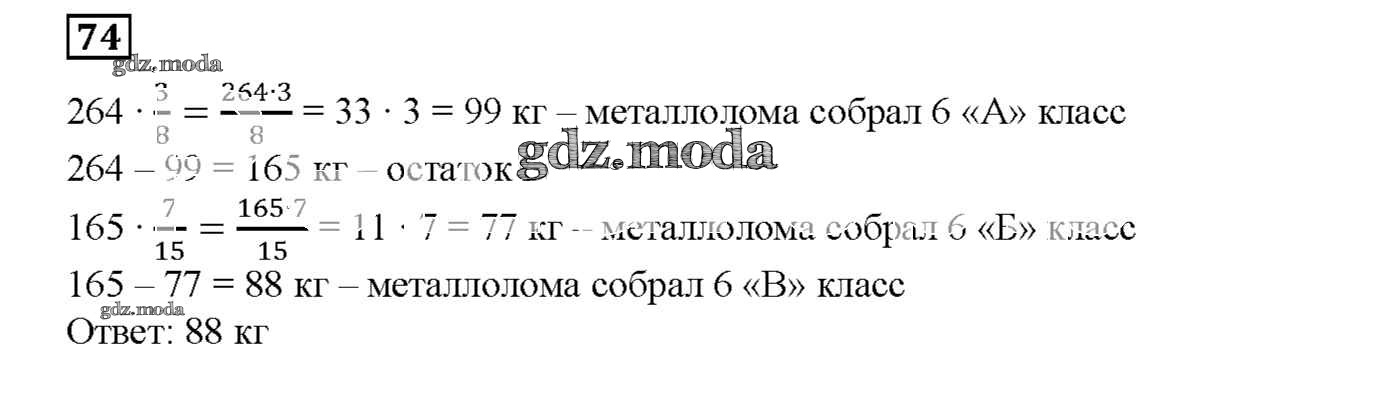 ОТВЕТ на задание № 74 Дидактические материалы по Математике 6 класс Мерзляк Алгоритм успеха