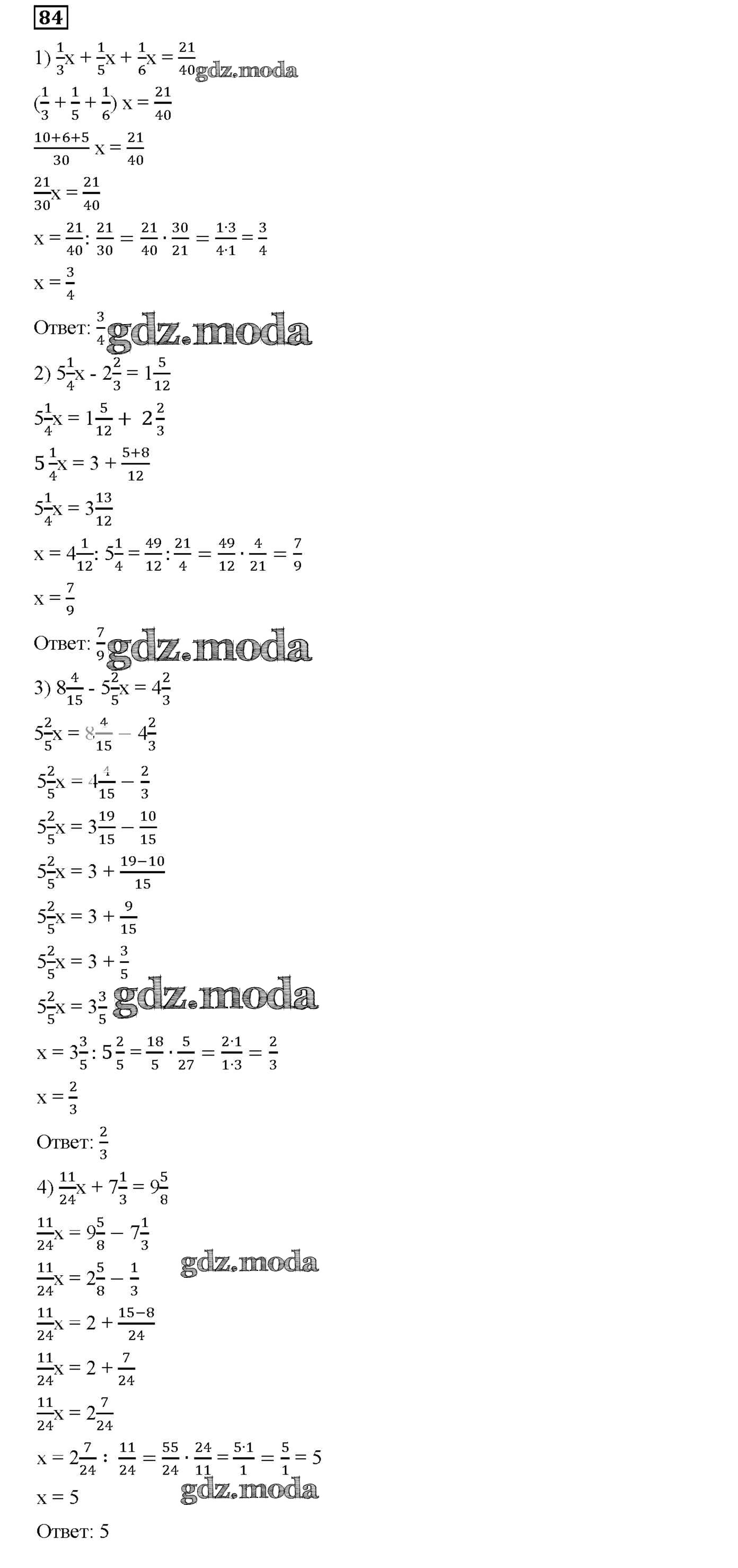 ОТВЕТ на задание № 84 Дидактические материалы по Математике 6 класс Мерзляк Алгоритм успеха