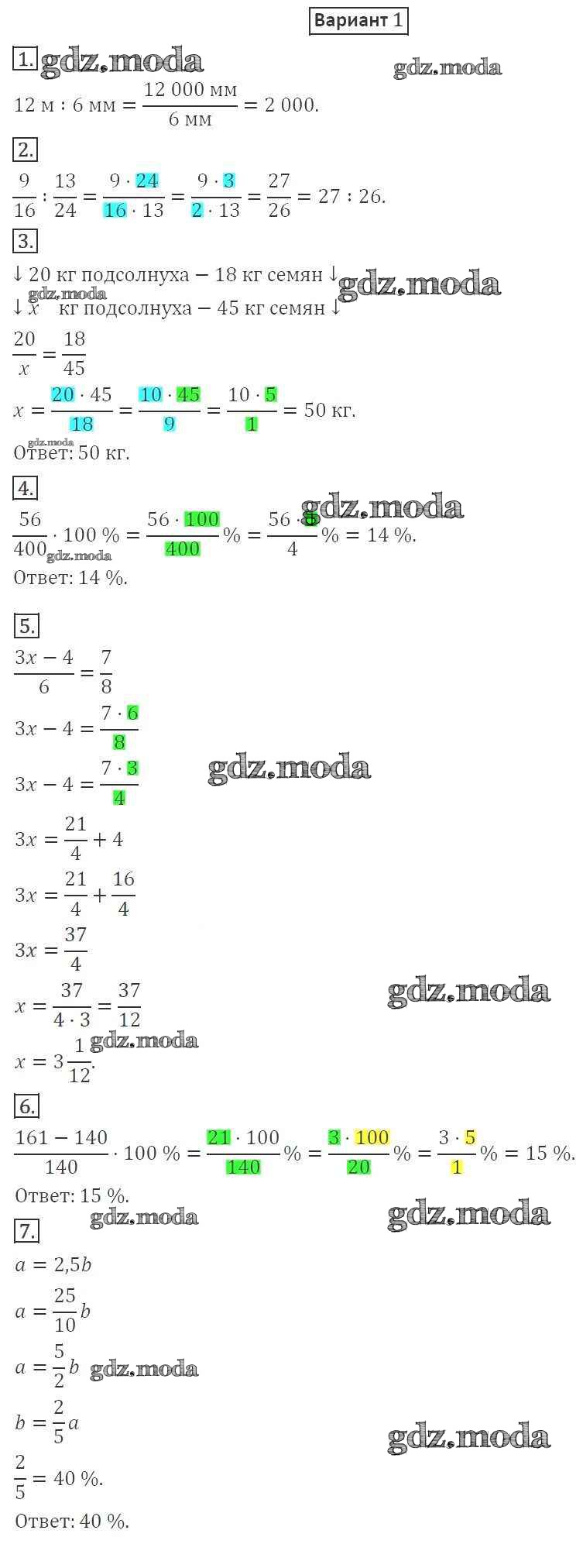 ОТВЕТ на задание № 1 Дидактические материалы по Математике 6 класс Мерзляк Алгоритм успеха