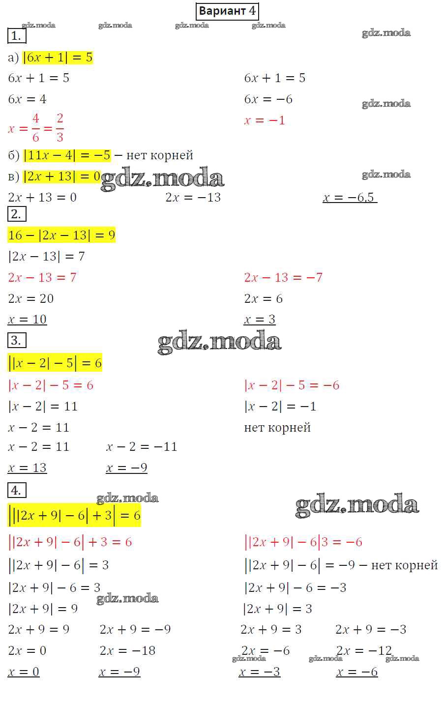 ГДЗ решение к заданию № 4 Математика 6 класс дидактические материалы Потапов М.К. Просвещение 2017 ФГОС бесплатно на гдз.мода!