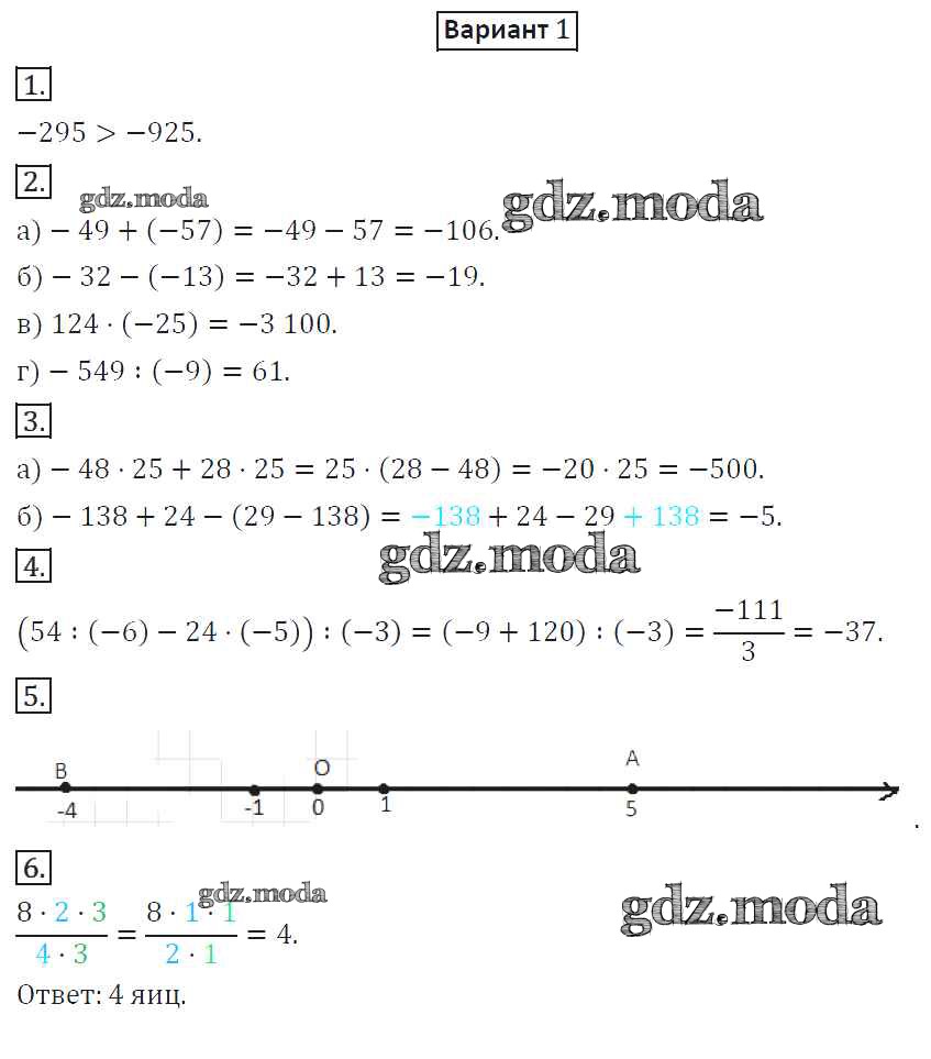 ОТВЕТ на задание № 1 Дидактические материалы по Математике 6 класс Потапов МГУ - школе