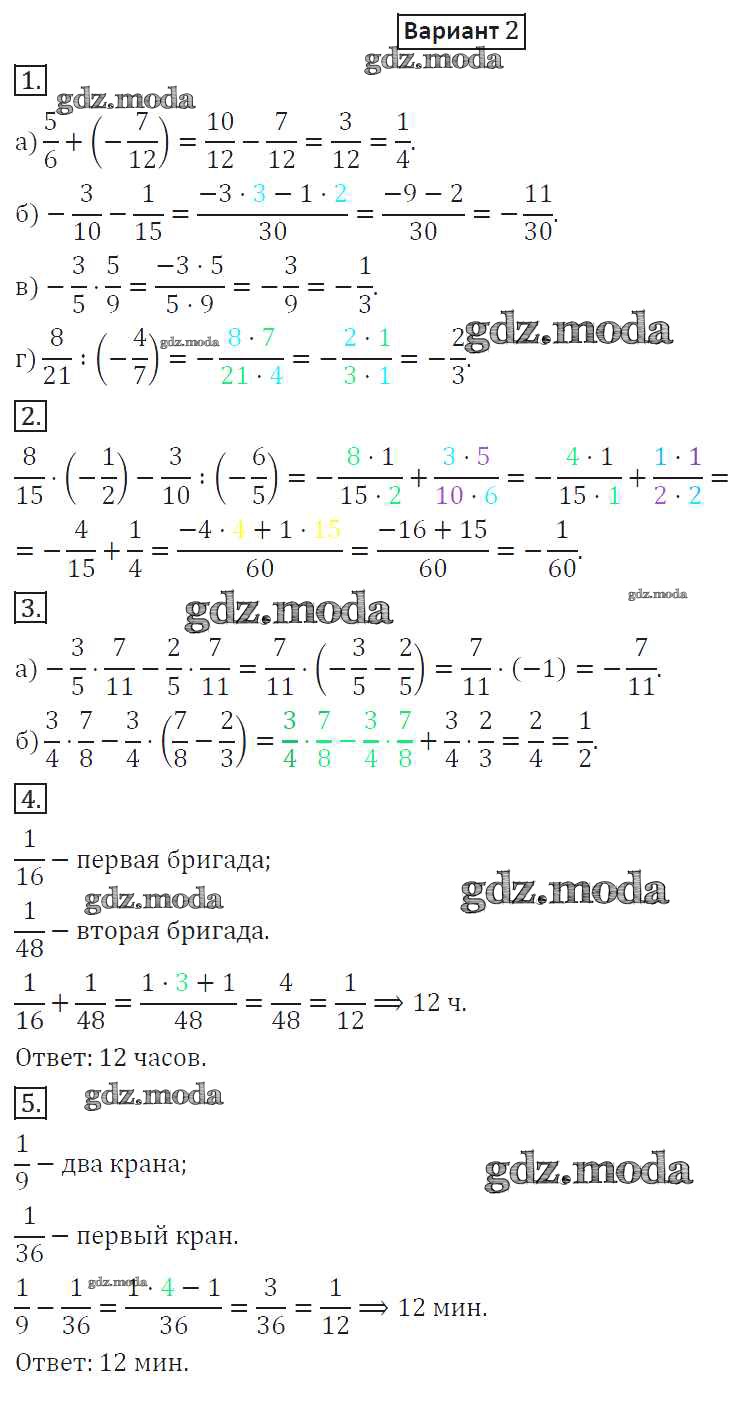 ОТВЕТ на задание № 2 Дидактические материалы по Математике 6 класс Потапов МГУ - школе