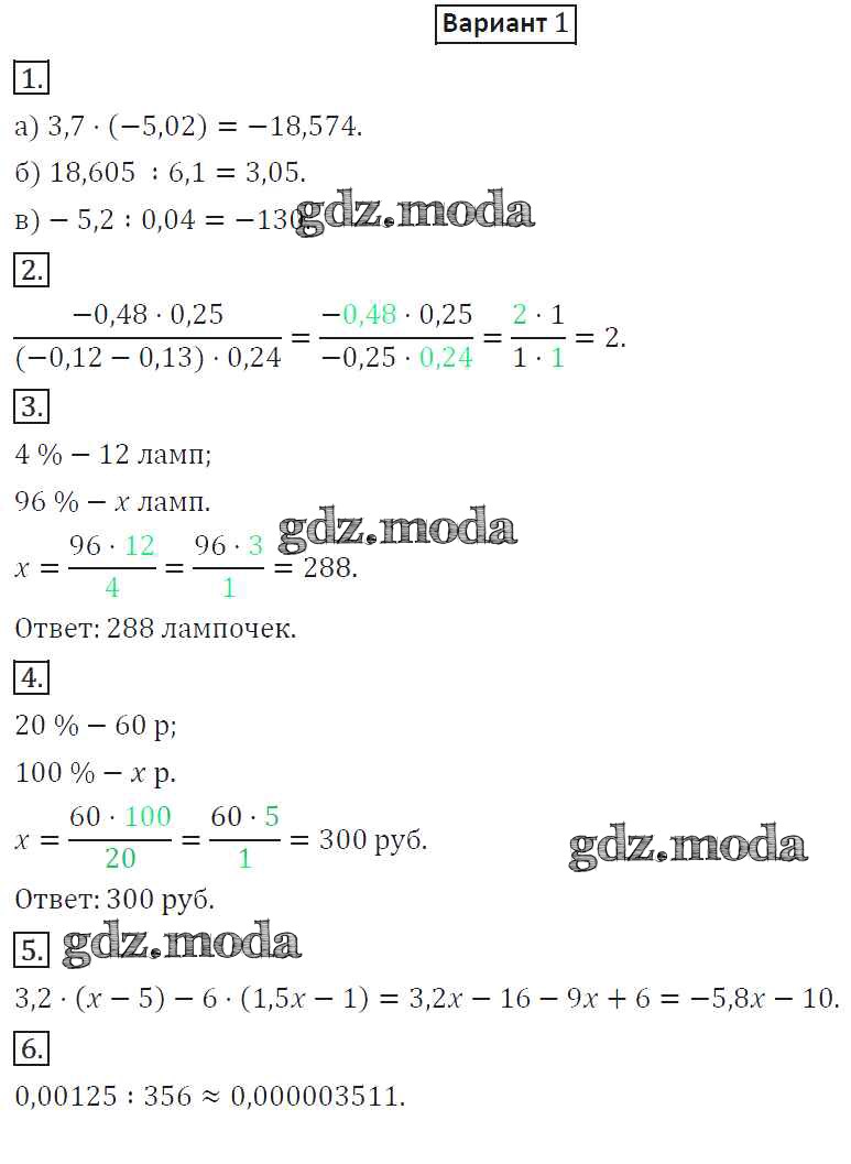 ОТВЕТ на задание № 1 Дидактические материалы по Математике 6 класс Потапов МГУ - школе