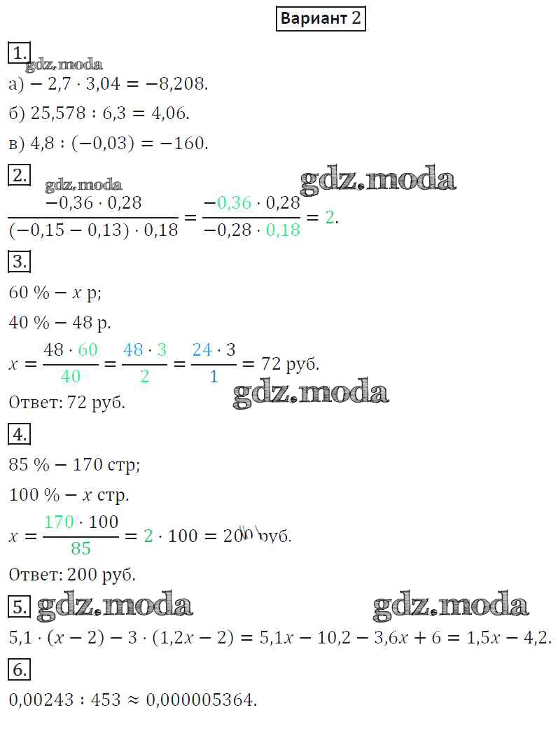ОТВЕТ на задание № 2 Дидактические материалы по Математике 6 класс Потапов МГУ - школе