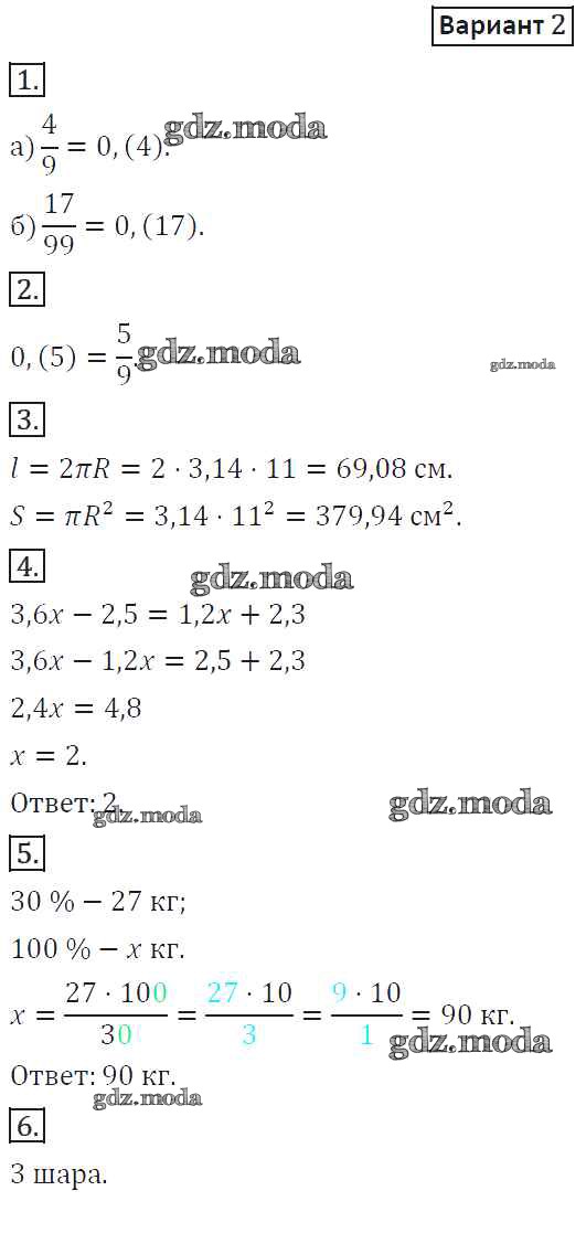ОТВЕТ на задание № 2 Дидактические материалы по Математике 6 класс Потапов МГУ - школе