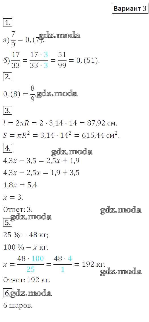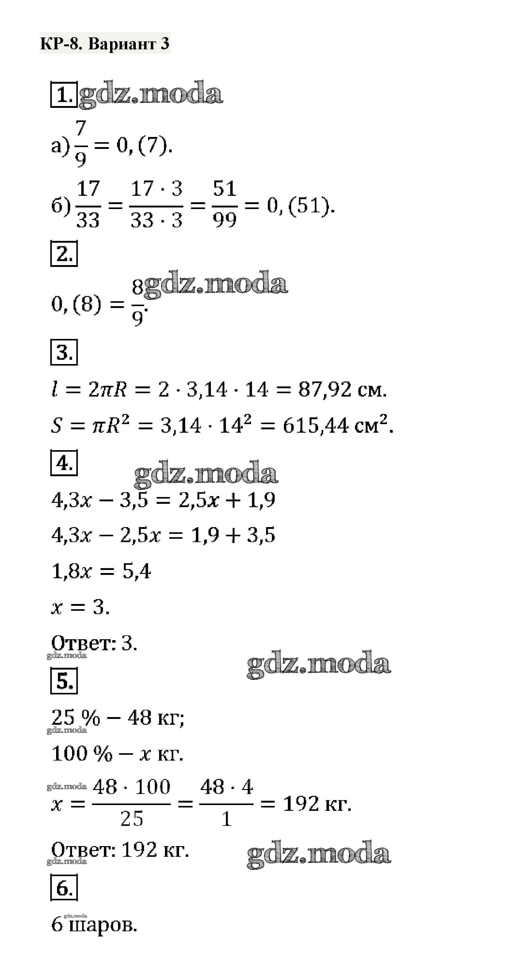 ОТВЕТ на задание № 3 Дидактические материалы по Математике 6 класс Потапов МГУ - школе