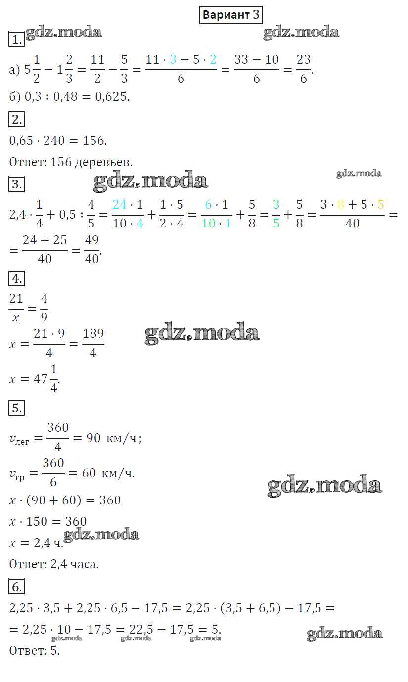 ОТВЕТ на задание № 3 Дидактические материалы по Математике 6 класс Потапов МГУ - школе