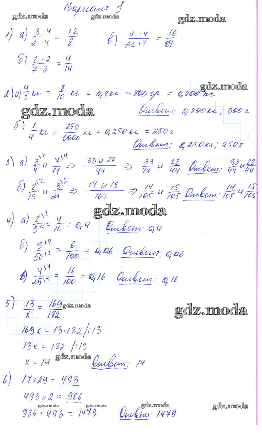 ГДЗ решение к заданию № 1 Математика 6 класс дидактические материалы Попов М.А. ( к новому уч. Виленкина Н.Я.) Экзамен 2017 ФГОС бесплатно на гдз.мода!