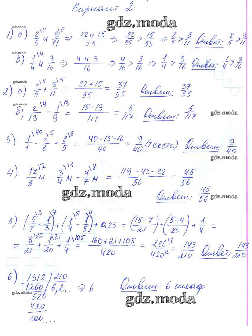 ГДЗ решение к заданию № 2 Математика 6 класс дидактические материалы Попов М.А. ( к новому уч. Виленкина Н.Я.) Экзамен 2017 ФГОС бесплатно на гдз.мода!