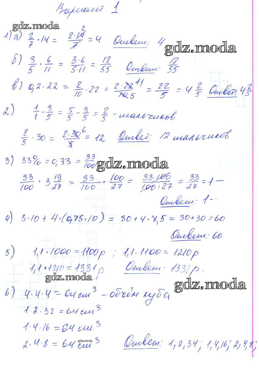 ГДЗ решение к заданию № 1 Математика 6 класс дидактические материалы Попов М.А. ( к новому уч. Виленкина Н.Я.) Экзамен 2017 ФГОС бесплатно на гдз.мода!