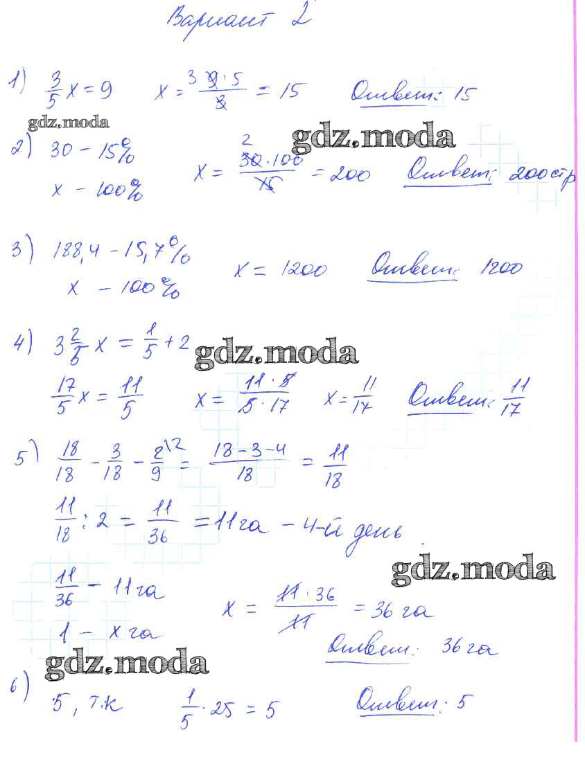 ГДЗ решение к заданию № 2 Математика 6 класс дидактические материалы Попов М.А. ( к новому уч. Виленкина Н.Я.) Экзамен 2017 ФГОС бесплатно на гдз.мода!