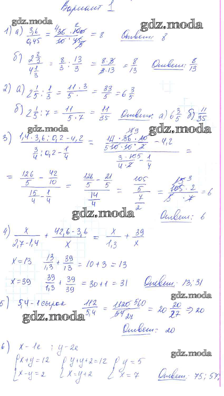 ГДЗ решение к заданию № 1 Математика 6 класс дидактические материалы Попов М.А. ( к новому уч. Виленкина Н.Я.) Экзамен 2017 ФГОС бесплатно на гдз.мода!