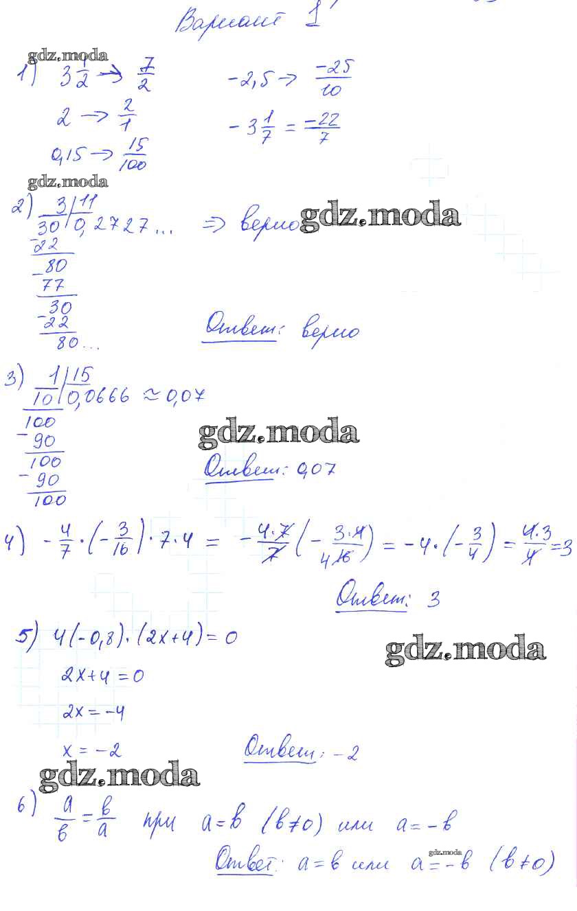 ГДЗ решение к заданию № 1 Математика 6 класс дидактические материалы Попов М.А. ( к новому уч. Виленкина Н.Я.) Экзамен 2017 ФГОС бесплатно на гдз.мода!