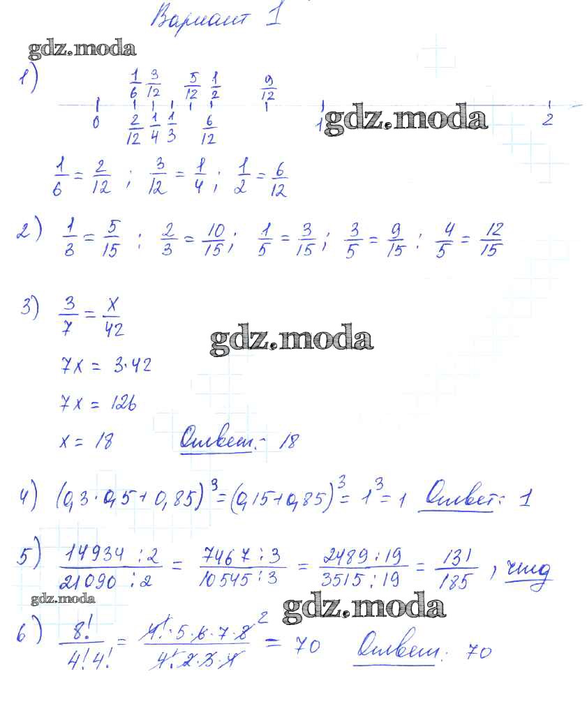 ГДЗ решение к заданию № 1 Математика 6 класс дидактические материалы Попов М.А. ( к новому уч. Виленкина Н.Я.) Экзамен 2017 ФГОС бесплатно на гдз.мода!
