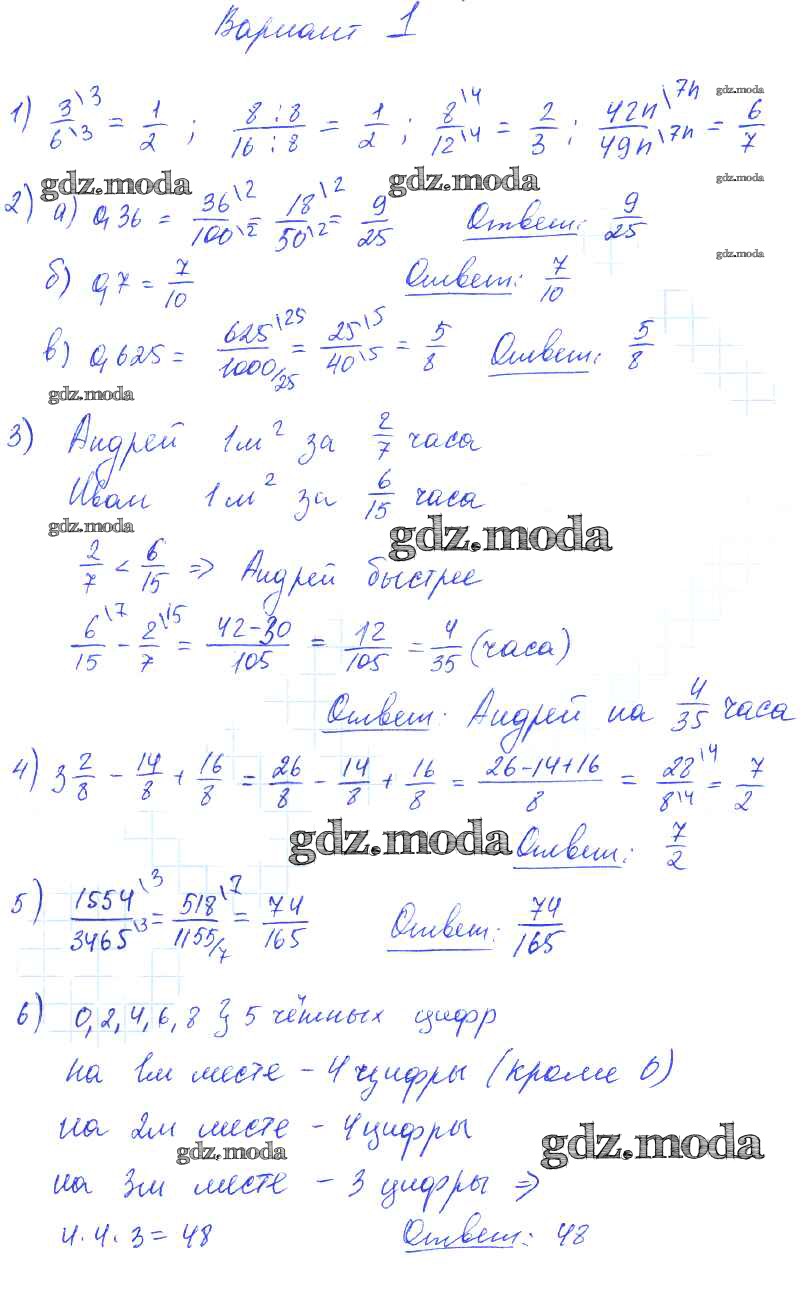 ГДЗ решение к заданию № 1 Математика 6 класс дидактические материалы Попов М.А. ( к новому уч. Виленкина Н.Я.) Экзамен 2017 ФГОС бесплатно на гдз.мода!