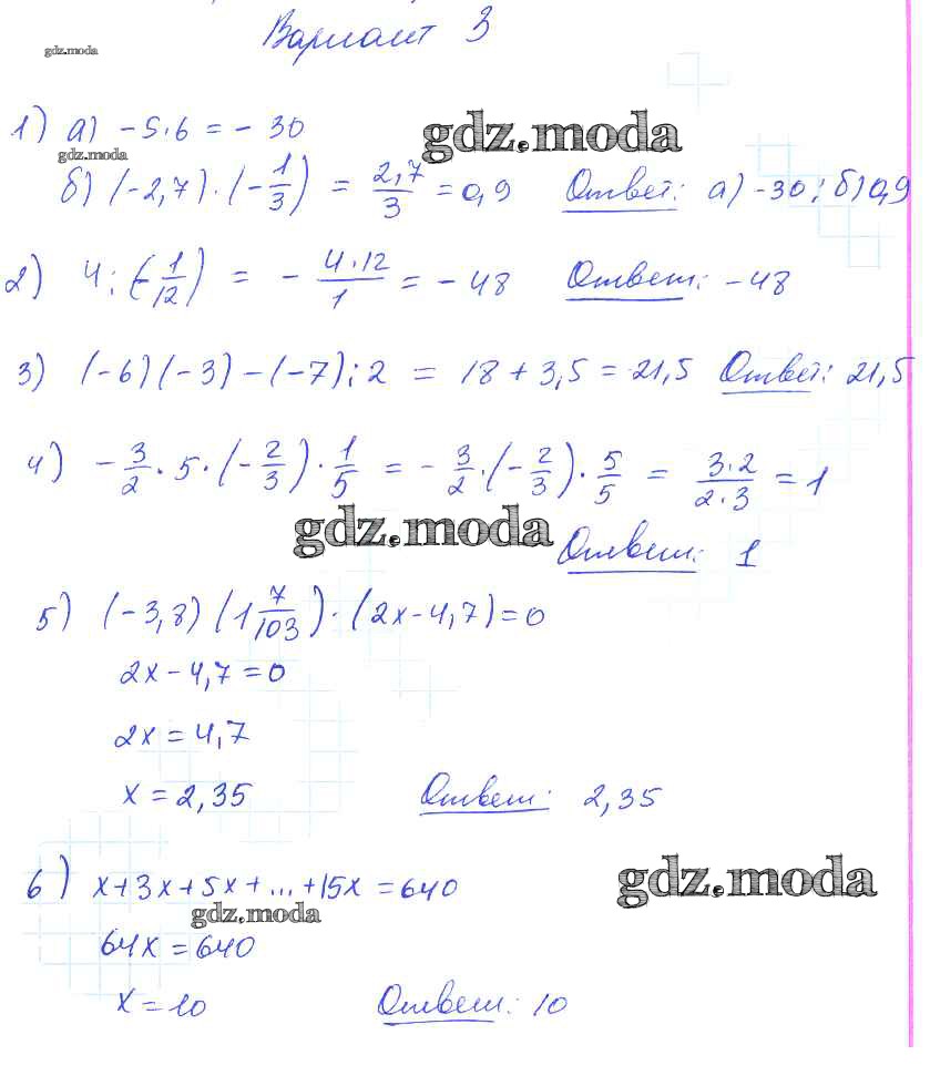 ГДЗ решение к заданию № 3 Математика 6 класс дидактические материалы Попов М.А. ( к новому уч. Виленкина Н.Я.) Экзамен 2017 ФГОС бесплатно на гдз.мода!